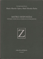 Me contaba el otro día Marino González que la idea de abeZetario, colección de poesía de la Institución Cultural "El Brocense" de la Diputación de Cáceres, dirigida por Teófilo González Porras, fue suya; que él mismo dibujó todas las letras del alfabeto, mayúsculas y minúsculas, para el proyecto; que, como en La Centena de Antonio Gómez, decidieron que se iría hacia atrás, desde la Z hasta la a y, en fin, cómo se quedó fuera como quien dice antes de empezar, por más que el invento esté a punto de terminar sin que cambiaran nunca la primera letra que se le puso en la cubierta al libro inaugural de la serie: la Z, a pesar de que el citado Marino se ofreciera a regalarles el abecedario completo. Bien, la entrega correspondiente a la b lleva por título Matriz desposeída (Últimas voces de la poesía en Extremadura) y los editores son los profesores Rafael Morales Barba, de la Autónoma de Madrid, y Mario Martín Gijón, de la de Extremadura. La elección de unas palabras de Ángel Campos Pámpano para titularla es, al tiempo, un homenaje al poeta extremeño que nos dejó demasiado pronto y al que aquí (y no sólo) seguimos echando de menos, así como a lo que él y otros hicieron por la poesía en Extremadura, por su madurez y actualización, para decirlo pronto. No todas herencias recibidas van a ser malas.