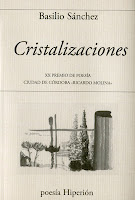 Por eso da gusto ver y leer la pulcra edición de Cristalizaciones, Premio Ciudad de Córdoba "Ricardo Molina" gracias a un jurado justo que presidió Pablo García Baena, que se incorpora al acreditado catálogo de Hiperión; ahora, si cabe, aún más solvente. Un catálogo, por cierto, al que se suman de golpe tres poetas extremeños. Además de BS, José Manuel Díez y Antonio Rivero Machina.